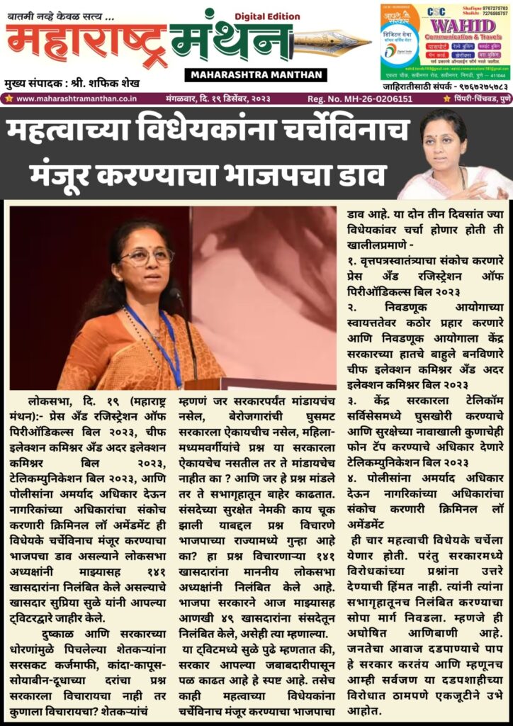 — Supriya Sule (@supriya_sule) December 19, 2023
