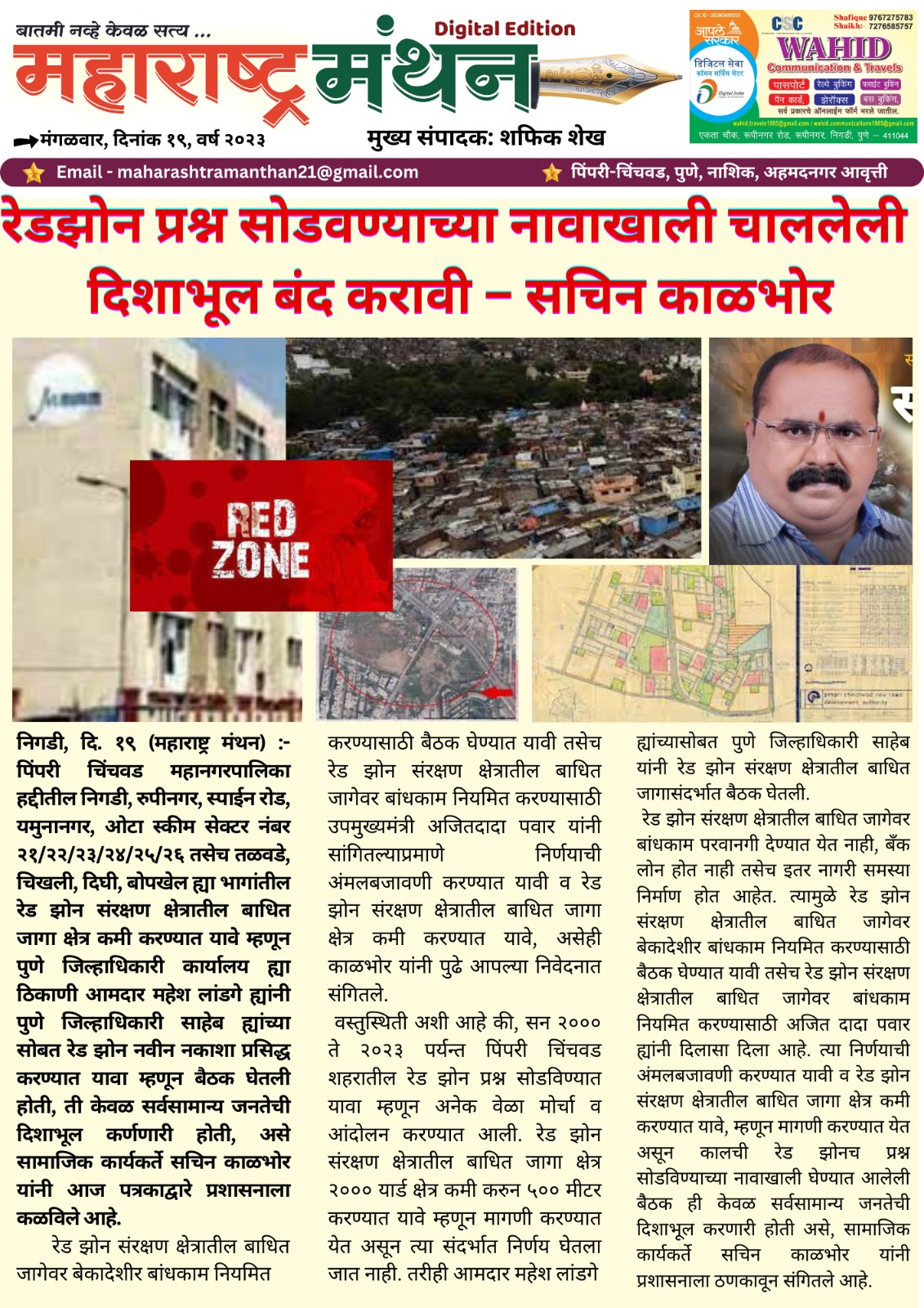 रेडझोन प्रश्न सोडवण्याच्या नावाखाली चाललेली दिशाभूल बंद करावी – सचिन काळभोर